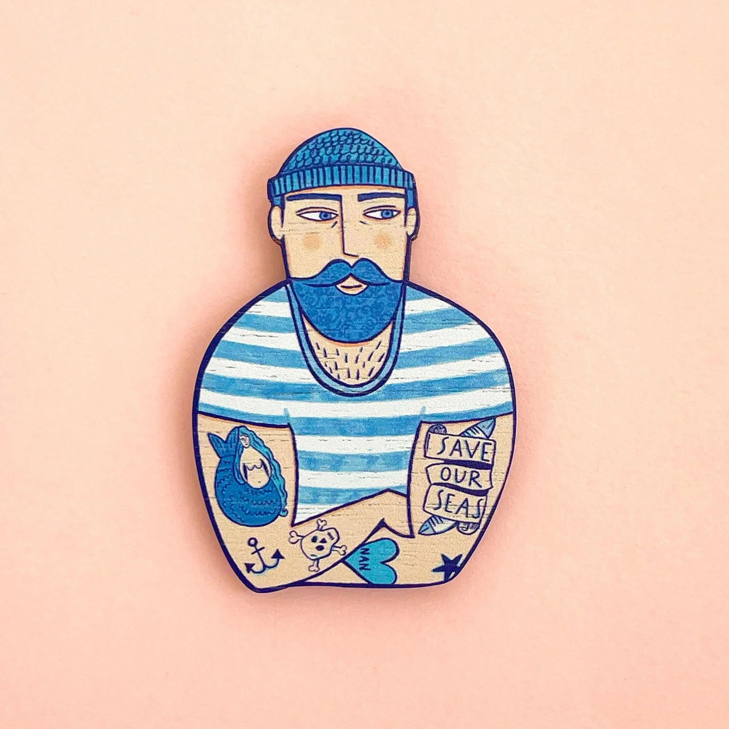Wooden brooches made from sustainable walnut wood in the UK.