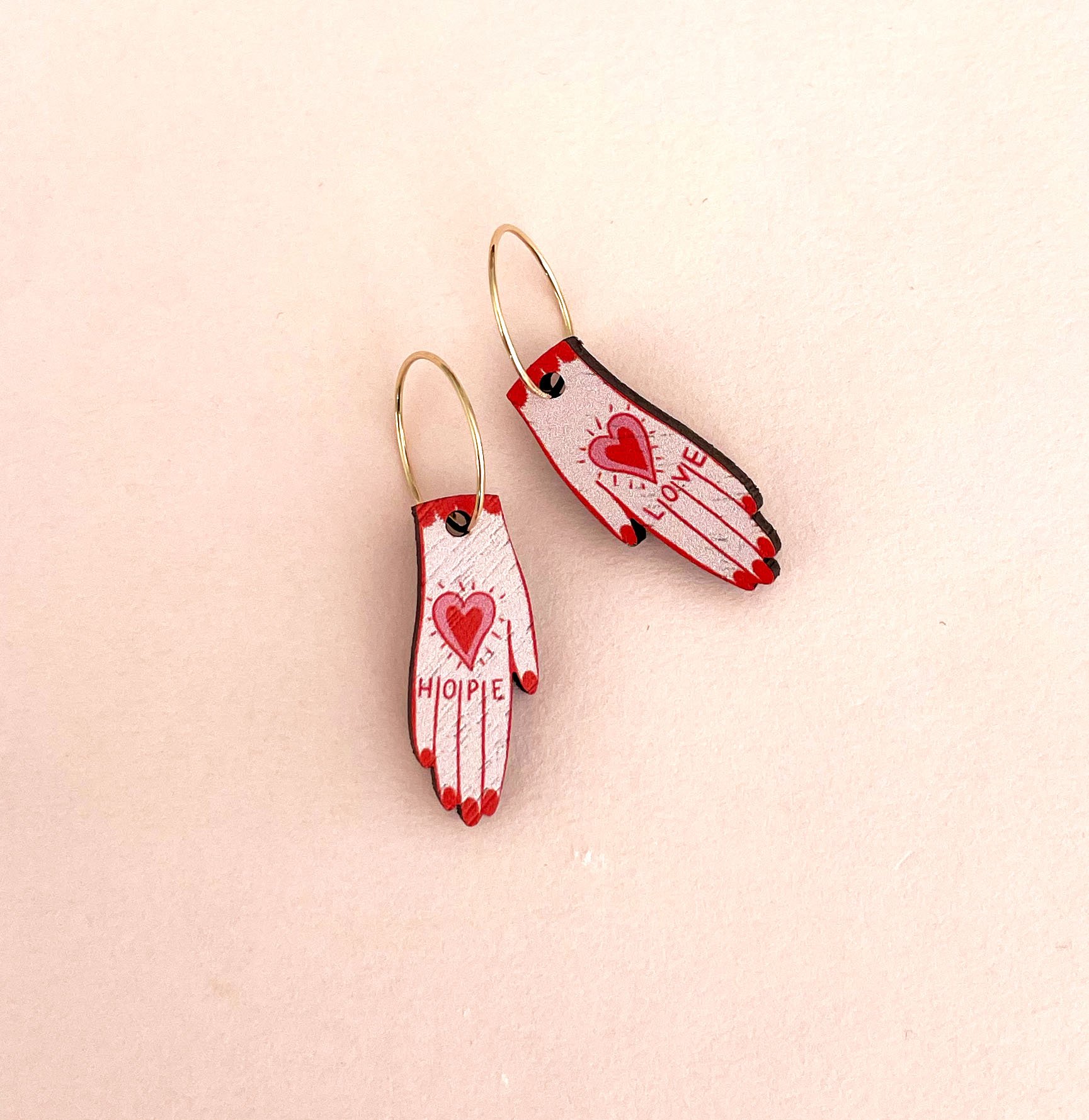 Wooden earrings made from sustainable walnut wood in the UK, with 14ct gold filled hoops.